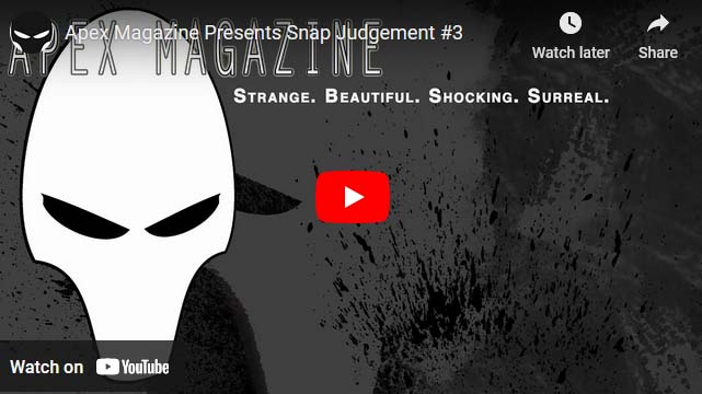 Read more / watch…: Snap Judgement #3Snap Judgement is a quarterly live stream featuring three professional editors who offer feedback on the first page (up to 250 words) on unpublished genre short stories submitted by Apex Magazine subscribers and Patreon backers.